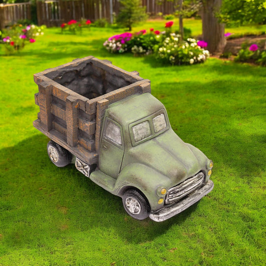 Green Resin Truck Planter – 13.5cm x 13cm x 28cm | Vintage Truck Flower Pot for Indoor & Outdoor Décor