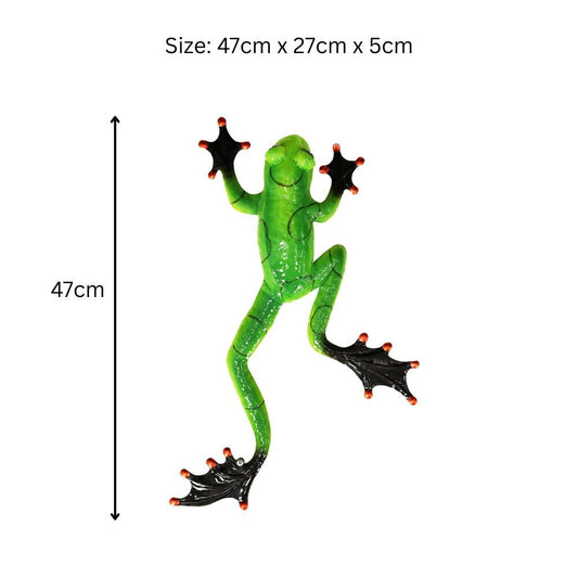 Green Metal Frog Wall Art – 47 x 27 x 5 CM | Hand-Painted 3D Metal Frog Wall Décor