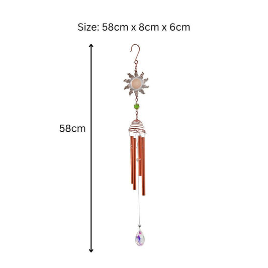 Rose Gold Sun Wind Chime – 58cm x 8cm x 6cm | Elegant Solar-Themed Metal Wind Chime for Outdoor & Indoor Décor | Soothing Melodic Chime