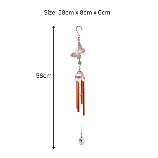Rose Gold Butterfly Wind Chime – 58cm x 8cm x 6cm | Elegant Metal Hanging Chime for Garden, Patio & Home | Melodic Outdoor Wind Bell