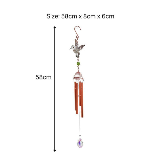 Rose Gold Hummingbird Wind Chime – 58cm x 8cm x 6cm | Elegant Metal Hanging Chime for Garden, Patio & Home | , Melodic Outdoor Wind Bell
