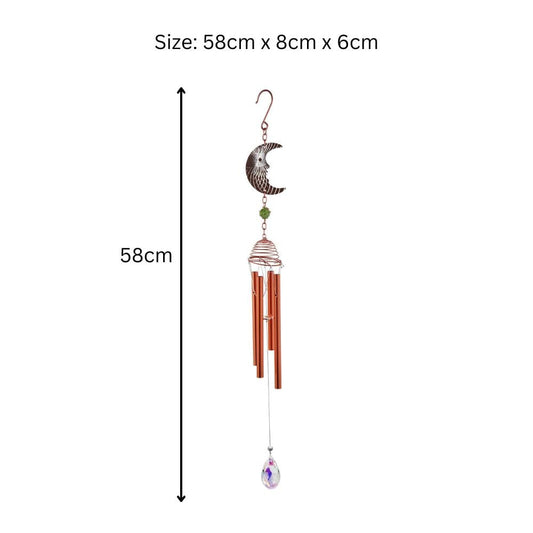 Rose Gold Moon Wind Chime – 58cm x 8cm x 6cm | Celestial Hanging Chime for Garden, Patio & Home | Soothing, Melodic Outdoor Wind Bell