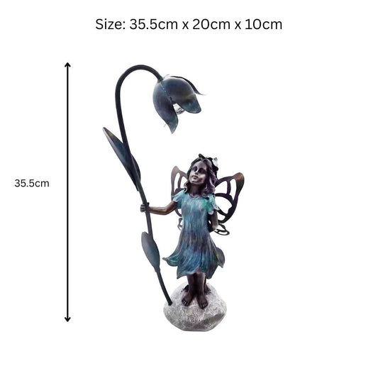 Resin Fairy with Solar Flower Light – 35.5cm x 20cm x 10cm | Enchanting Garden Statue with LED Glow for Outdoor & Patio Décor