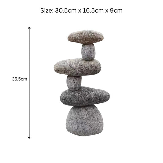 Resin 6 Stone Cairn Sculpture – 30.5cm x 16.5cm x 9cm | Zen Garden Rock Stack for Outdoor & Indoor Décor