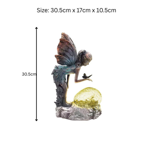 Resin Perching Fairy with Solar Bubble Light – 30.5cm x 17cm x 10.5cm | Enchanting Outdoor Garden Ornament with Solar-Powered Glow