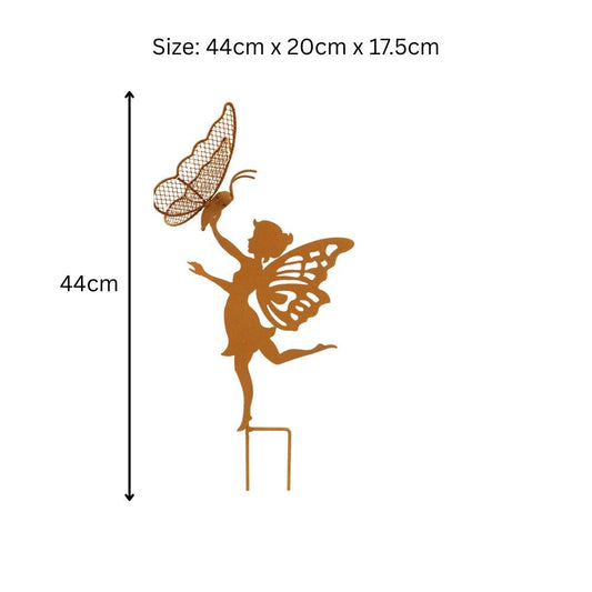 Rustic Fairy Silhouette with Solar Butterfly – 44 x 20 x 17.5 CM | Metal Garden Sculpture with Solar Light | Enchanted Outdoor Fairy Décor