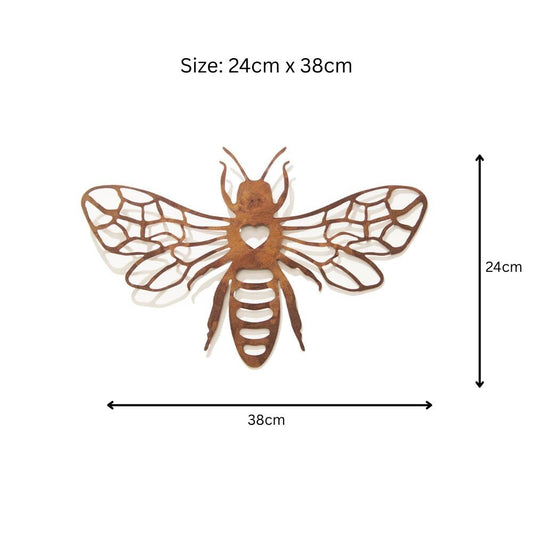 Rusted Metal Honey Bee Silhouette Wall Art – 24 x 38 CM | Rustic Bee Wall Hanging for Indoor & Outdoor