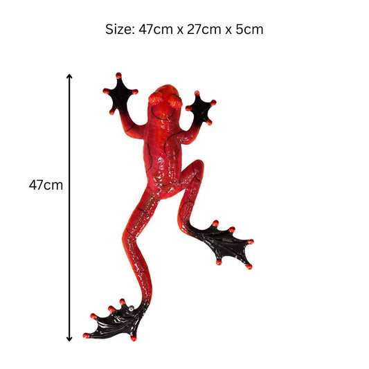 Red Metal Frog Wall Art – 47 x 27 x 5 CM | 3D Hand-Painted Metal Frog Décor
