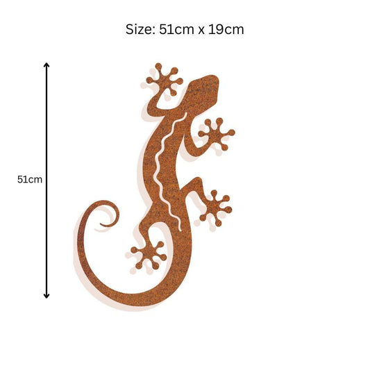 Rusted Metal Gecko Silhouette Wall Art – 51 x 19 CM | Rustic Lizard Wall Décor for Indoor & Outdoor