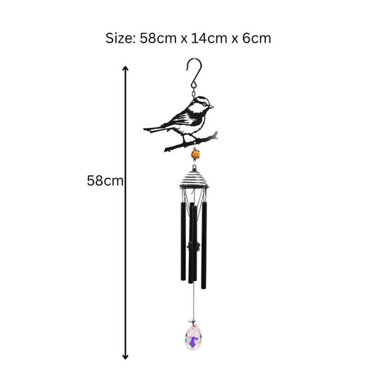 Silhouette Blue Tit Wind Chime – Black, 58cm x 14cm x 6cm | Elegant Hanging Bird Chime for Garden, Patio & Home | Outdoor Décor