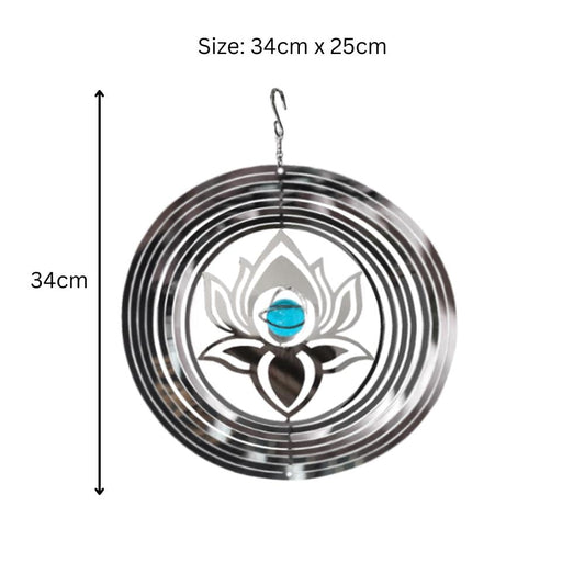 Serenity Stainless Steel Hanging Wind Spinner – 34cm x 25cm | 3D Metal Kinetic Garden Ornament & Outdoor Wind Sculpture
