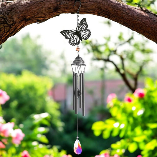 Silhouette Butterfly Wind Chime - Elegant Black Design for Garden Décor