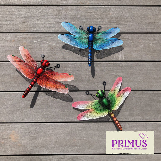 Small Metal Dragonfly Wall Art - Green, Blue & Red