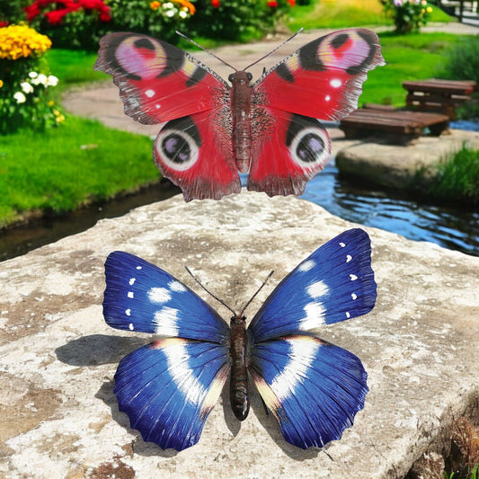 Small Metal 3D Butterfly Wall Art - Blue & Red (Mixed pack of 6)