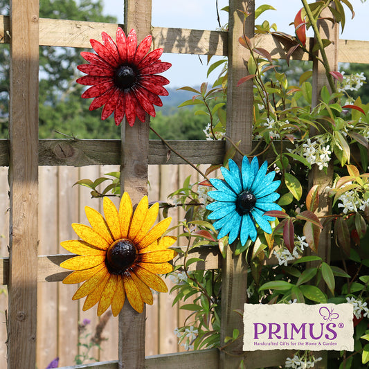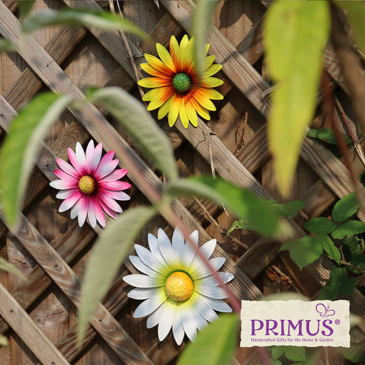 Set of 3 Metal Wall Mounted Glossy Daisies