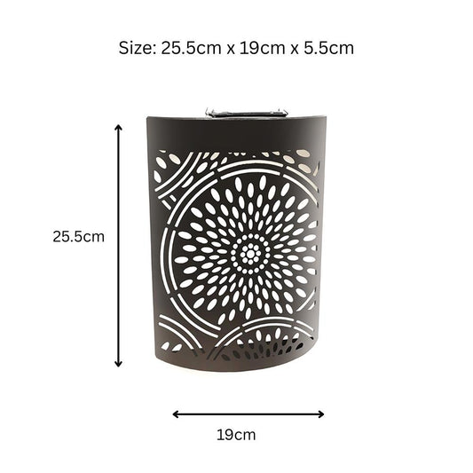 Small Metal Curved Moroccan Solar Wall Panel – 25.5 x 19 x 5.5 CM | Solar-Powered Outdoor Wall Art | Weatherproof Garden Panel for Patio