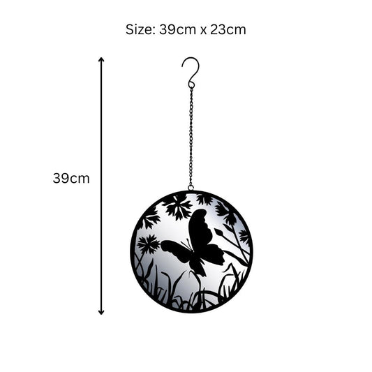 Black Butterfly Hanging Mirror Silhouette – 39cm x 23cm | Metal Wall Art & Garden Décor | Reflective Hanging Butterfly Ornament
