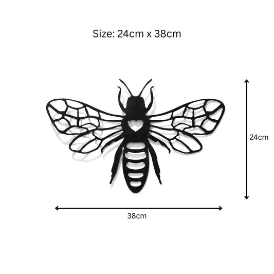 Black Metal Honey Bee Silhouette Wall Art – 24 x 38 CM | Decorative Bee Wall Hanging for Indoor & Outdoor
