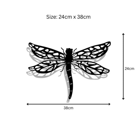 Black Metal Dragonfly Silhouette Wall Art – 24 x 38 CM | Elegant Metal Dragonfly Décor for Indoor & Outdoor