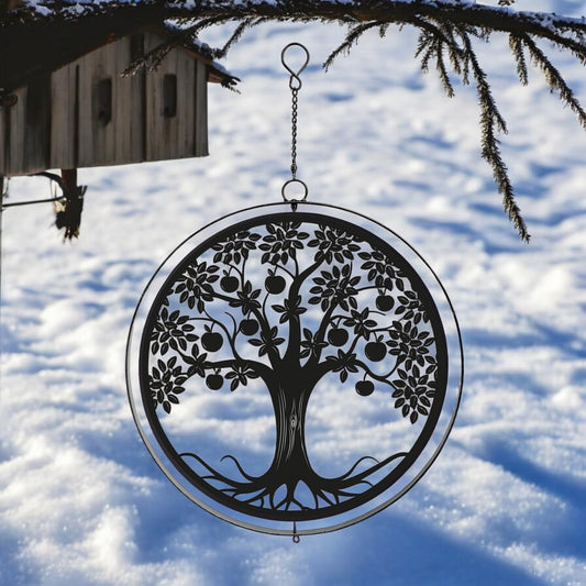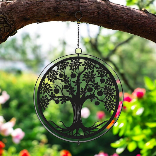 Black Metal Apple Tree Spinner Hanging Silhouette Décor for Garden Patio Backyard Nature Lover Gift