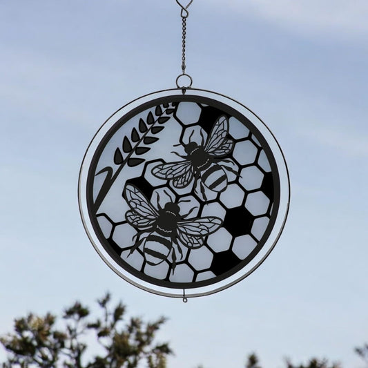 Black Metal Honey Bees Hanging Silhouette Orbit Spinner – 39cm x 23cm | Outdoor & Indoor Wind Spinner for Garden, Patio & Home Décor