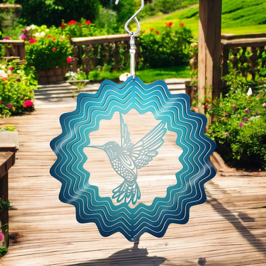 Blue Hummingbird Stainless Steel Hanging Wind Spinner – 34cm x 25cm | 3D Kinetic Metal Wind Sculpture for Garden & Home Décor