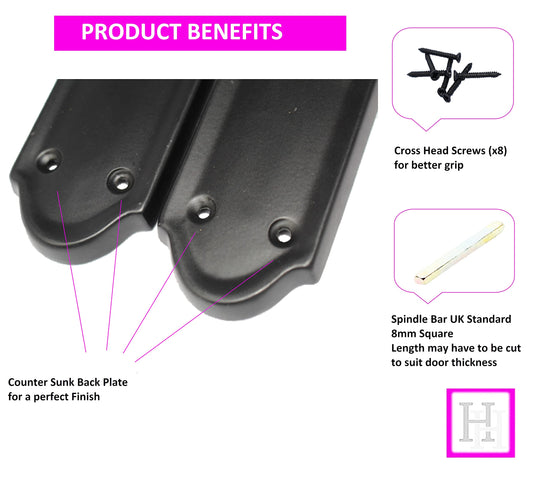 Door Handles Internal & External Victorian Straight Lever Latch Matt Black. 6+
