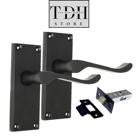 Matt Black Victorian Scroll Door Handle Modern Matt Black + Tubular Latch