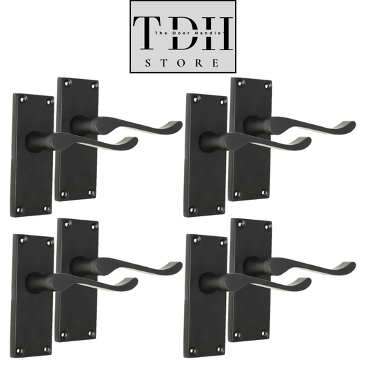 Matt Black Victorian Scroll Lever Latch Door Handle, Including Tubular Latch, 4 Pairs