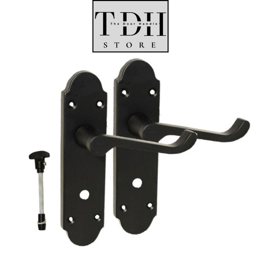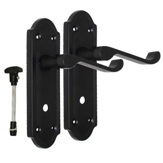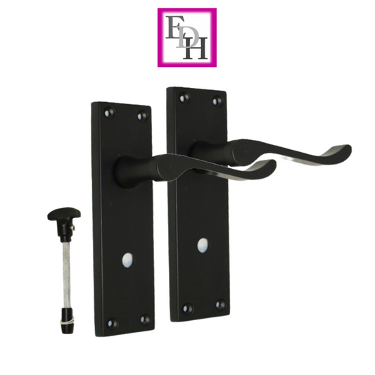 Matt Black Modern Victorian Scroll Bathroom Door Handles and Bath Lock 1 Pair