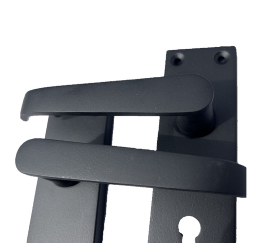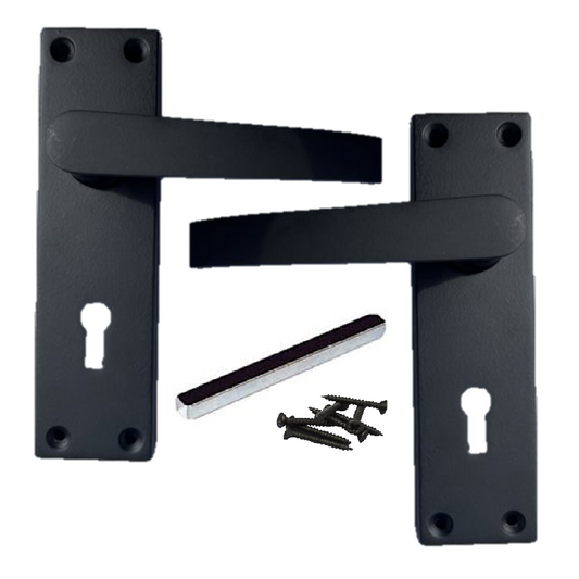 Matt Black Door Handles - Victorian Straight Lock Handles, Backplate 150x42mm