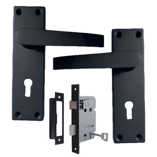 Matt Black Door Handles Victorian Straight Lock Handles and Sash Lock