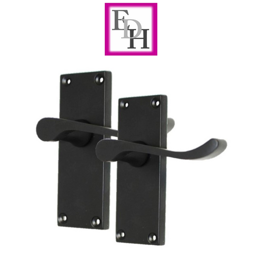 Matt Black Modern Victorian Scroll Lever Latch Door Handle + Tubular Latch 6 Pairs