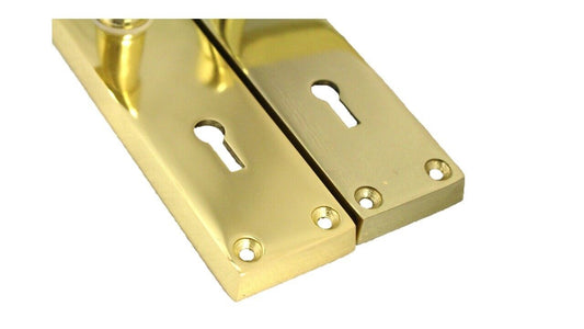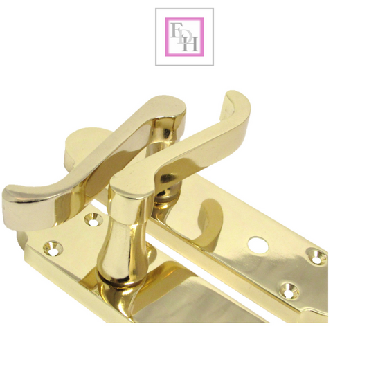 Brass Finish Epsom Victorian Scroll on Shaped Back Plate Lock Door Handle 1 Pair