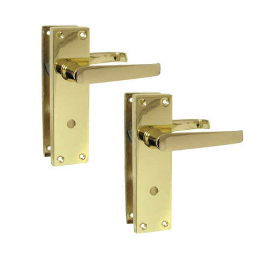 Victorian Straight Brass Bathroom Door Handles – Interior Lock Handle 2 Pairs +