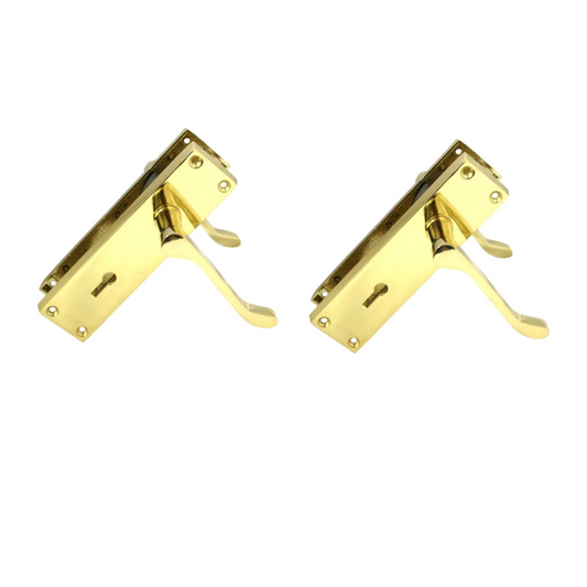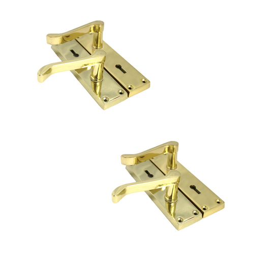 Brass Finish Epsom Victorian Scroll on Shaped Back Plate Lock Door Handle x 2