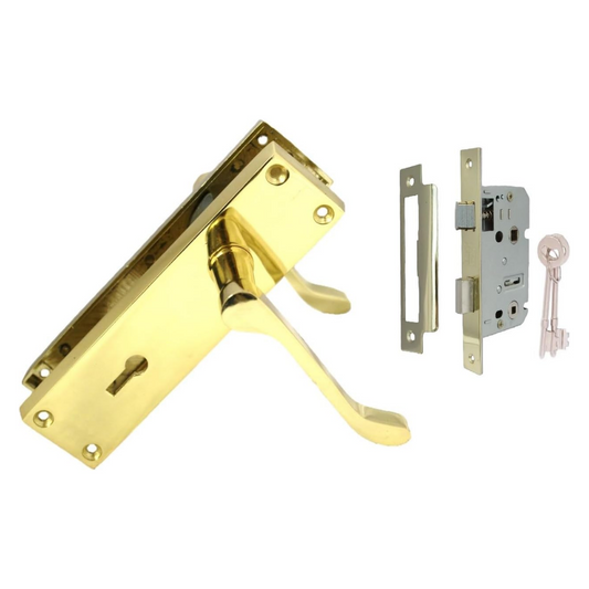 Lock Door Handles Modern Brass Victorian Scroll Door Handle & 3 Lever Sash Lock