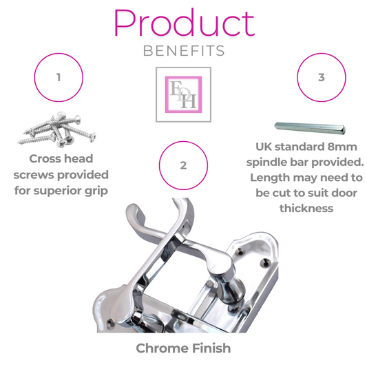 Regular price From £0.00Regular priceUnit price / perSale price From £0.00Cadenza Door Handles Set Chrome Victorian Scroll Lever Lock Handle 178mm x 40mm