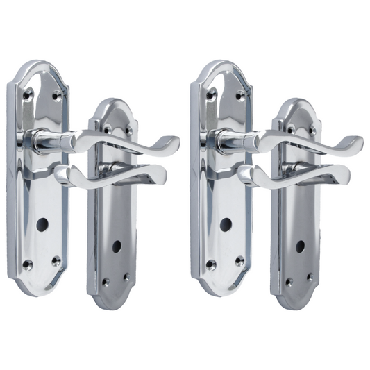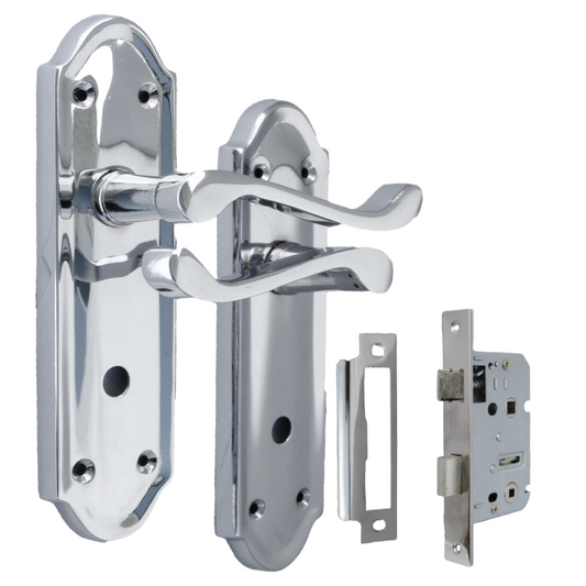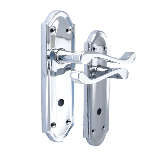 Cadenza Chrome Scroll Door Handles on Backplate – Bathroom Lock Set