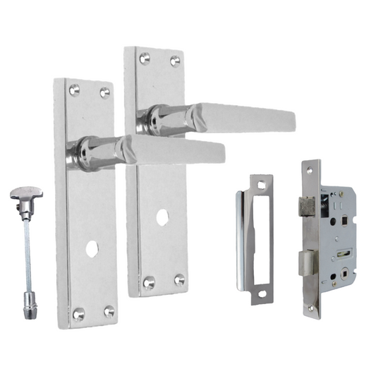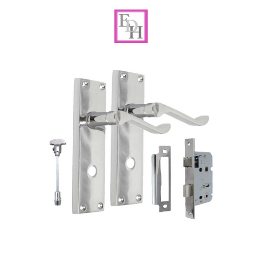 Victorian Straight Chrome Bathroom Interior Door Handles+3 Lever Mortise Lockx2.