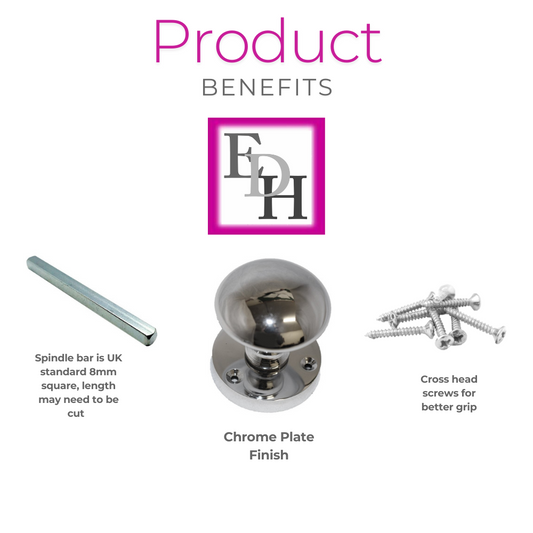 Polished Chrome Round Door Knob Set Including Tubular Latch - Victorian Style