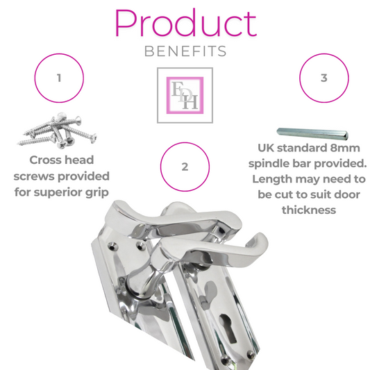 Epsom Door Handle - Chrome Internal Door Handles - 3 Lever Mortice Sash Lock x2