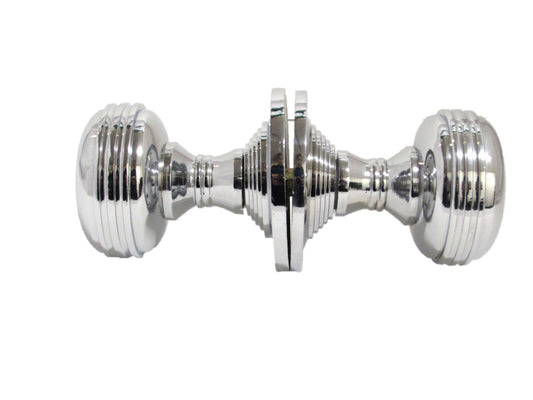 Chrome Polished Round Door Knob Set – Heavy Reeded Style Sprung Handles 1 Pair