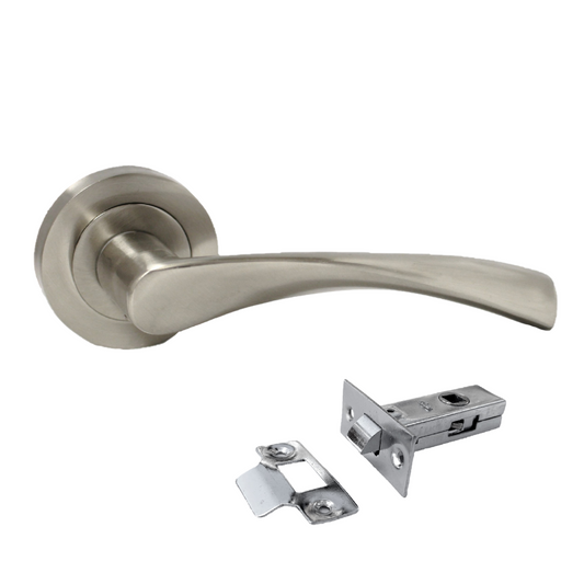 Satin Nickel Twist Door Handles + Latches Set Internal Lever on Rose 1 Pair