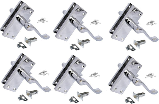 Haven Heritage 7 Sets of Victorian Scroll Latch Door Handles Polished Chrome Hinges & Latches Pack Sets 118MM X 40MM