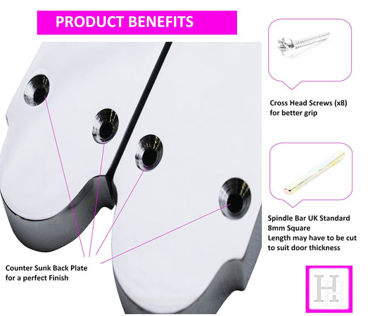 Polished Chrome Twist Door Handle,Interior Latch Lever on Long Back Plate