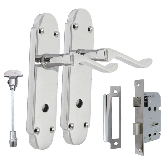 Epsom Door Handle Set – Chrome Internal Lock Door Handles + Bathroom SASH Lock