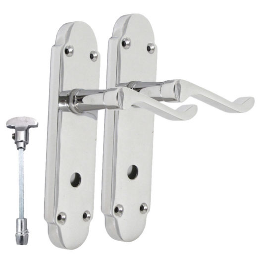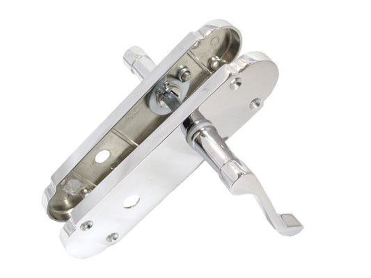 Polished Chrome Twist Door Handle, Interior Latch Lever on Long Back Plate