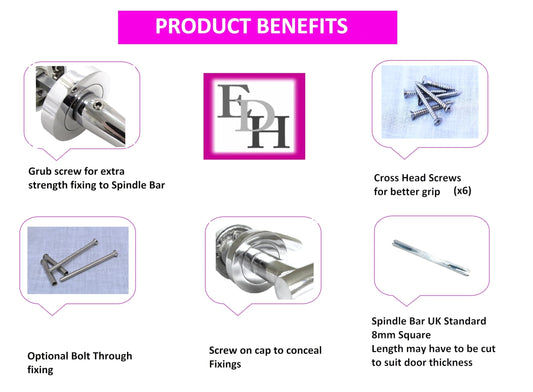 Arched T Bar Internal Latch, Essential Sets for Internal, Featuring Polished Chrome Finish, Door Latch Compatibility for Home & Office (1 Pair of Handles + Tubular Latch)