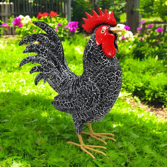 Large Metal Black Cockerel (44cm x 16cm x 36cm) – Handcrafted Rustic Rooster Garden Ornament Farmyard Statue
